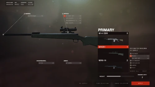 - As a rule of thumb, it is crucial that you equip AP ammo, as it will make sniping enemies much easier. The low cost of the M40A1 will usually leave you enough supply points for a mid-long range scope and AP ammo. Another thing to keep in mind is the weapon's heavy weight. You cannot equip a Chest Carrier and Heavy Armor at the same time with this weapon. You can only do Light Armor and Chest Carrier, or Heavy Armor and Chest Rig. If you wish to have all Heavy gear, switching to a different rifle may be a better decision.